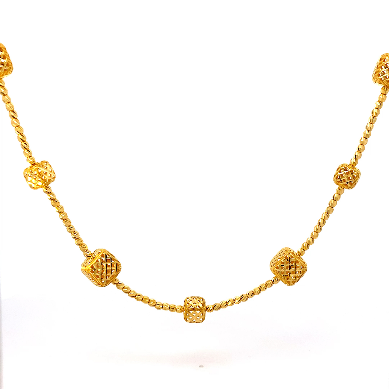 04010N (1C) 2.00CI (FH) R.L.H.Net Cube Italy 镂空网6大7小四方珠间批珠项链(2.00CI)
