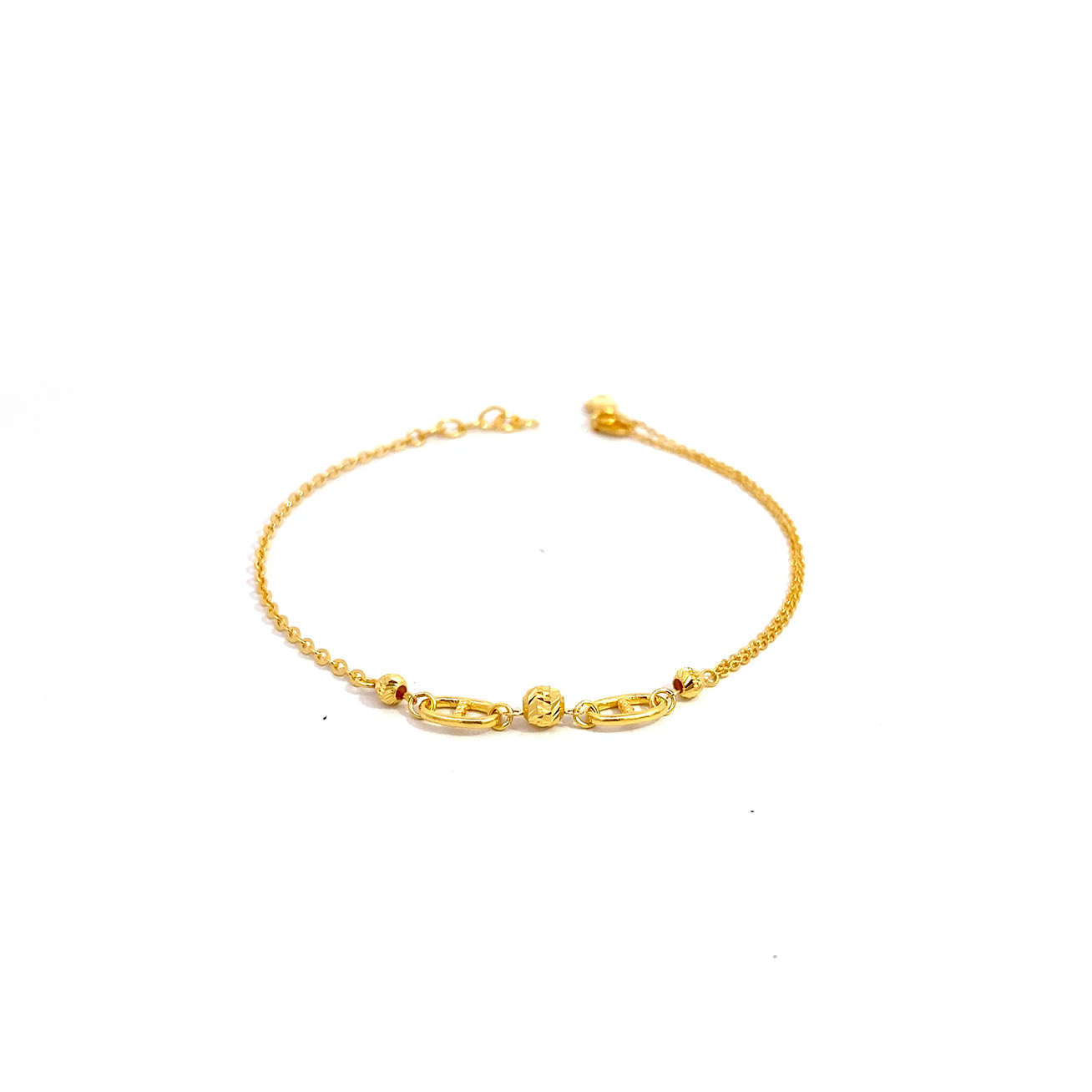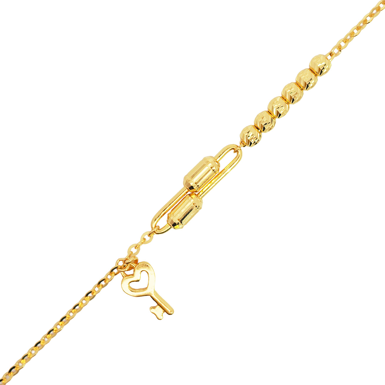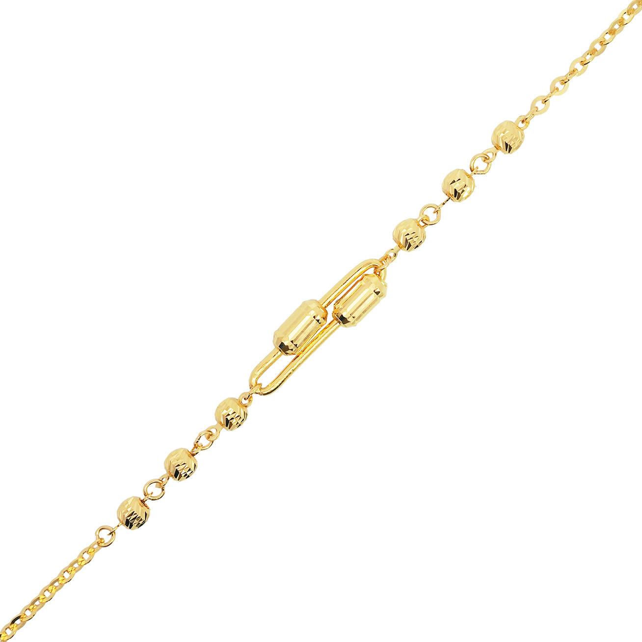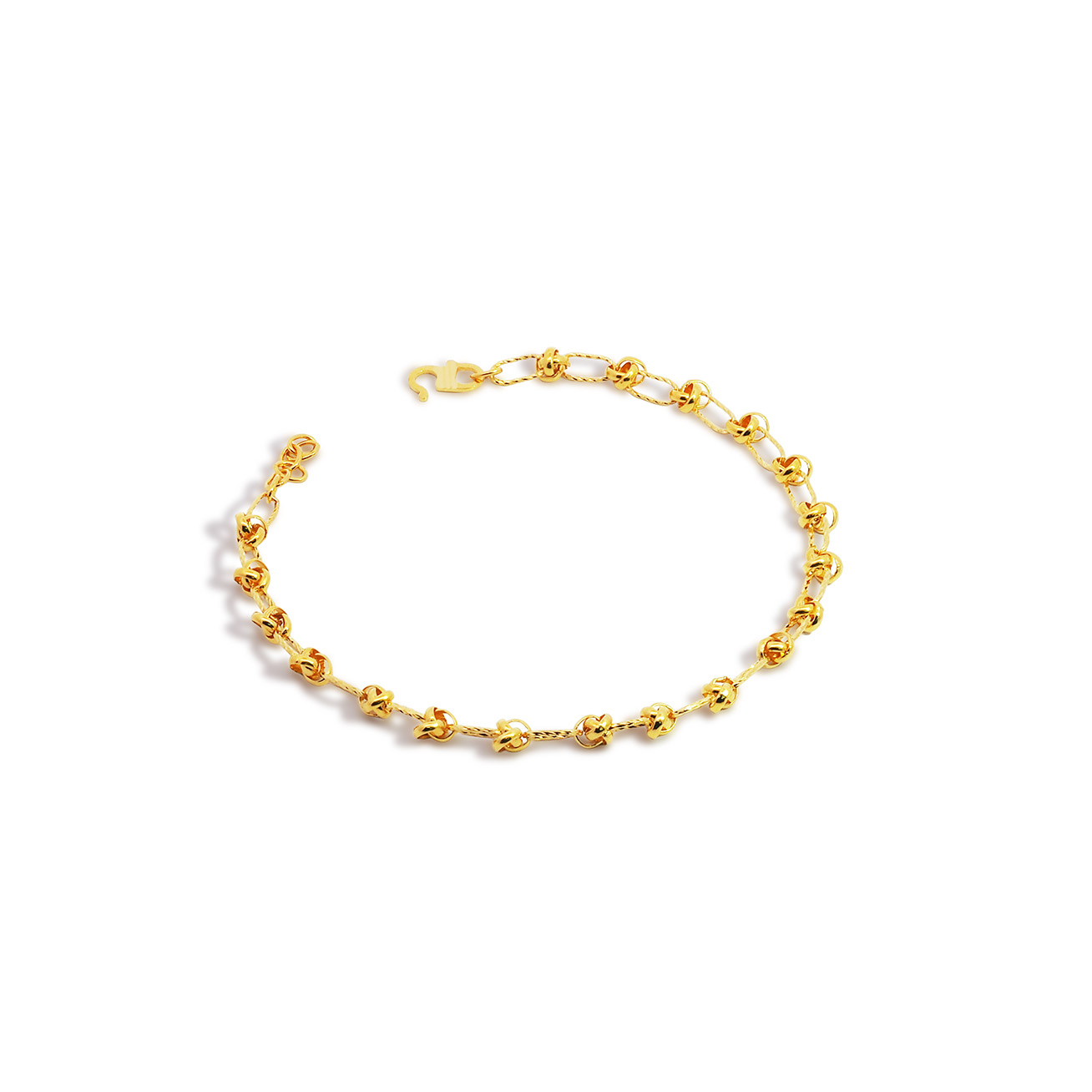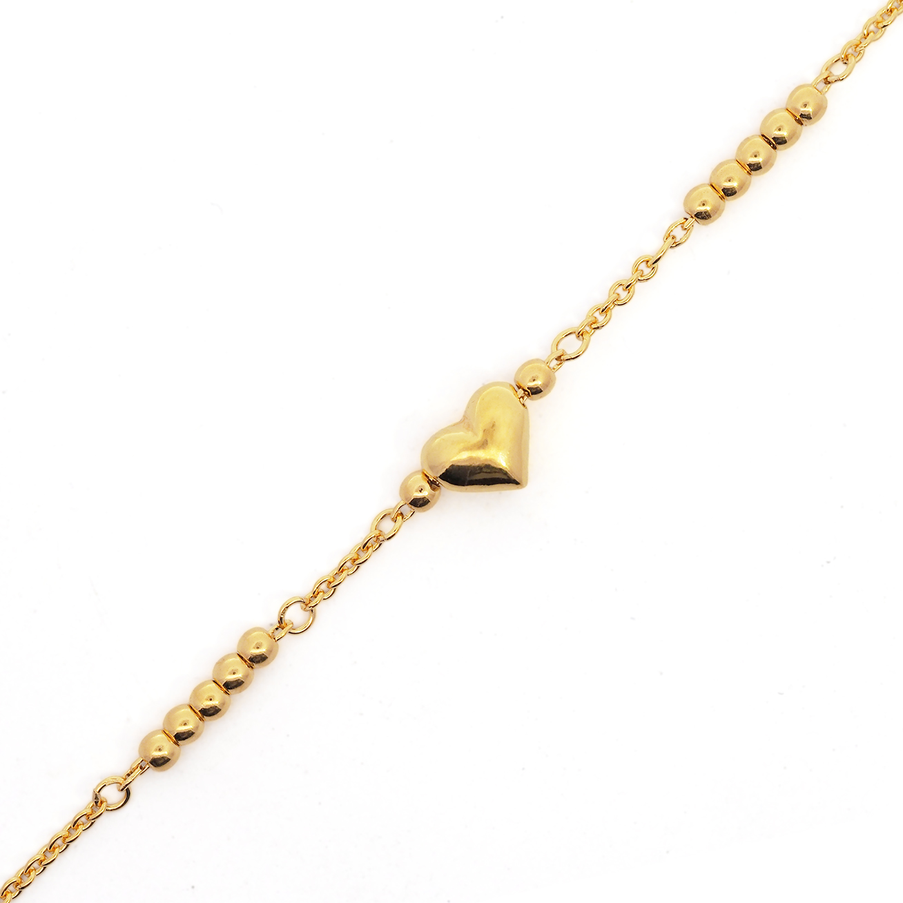 03309B 1C (FH) R.T Plain Ball/Heart 万字光珠间光杏仁手链-鱼勾