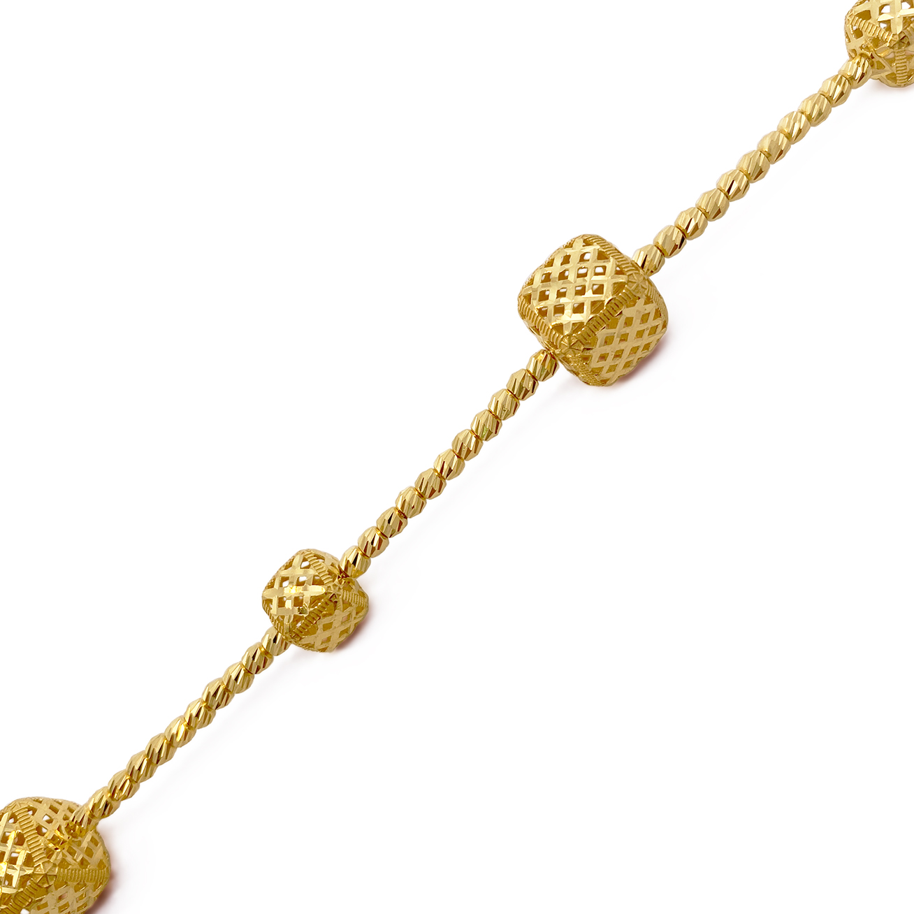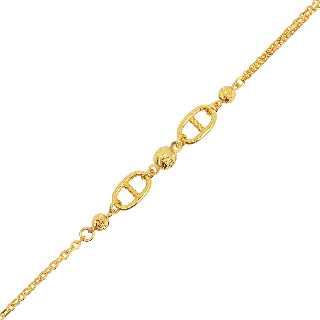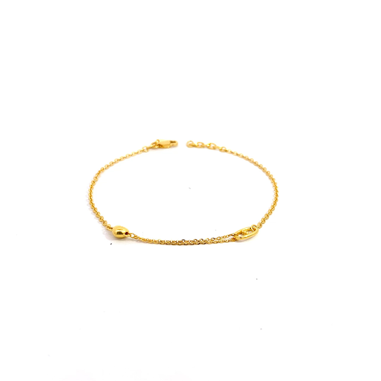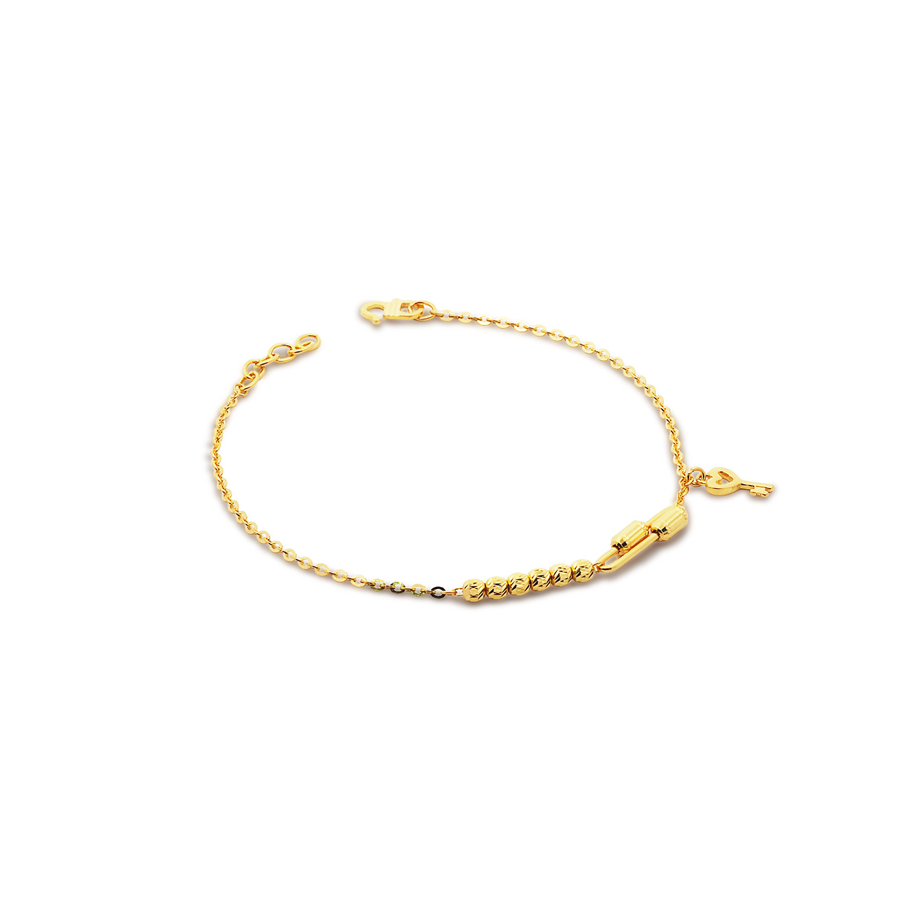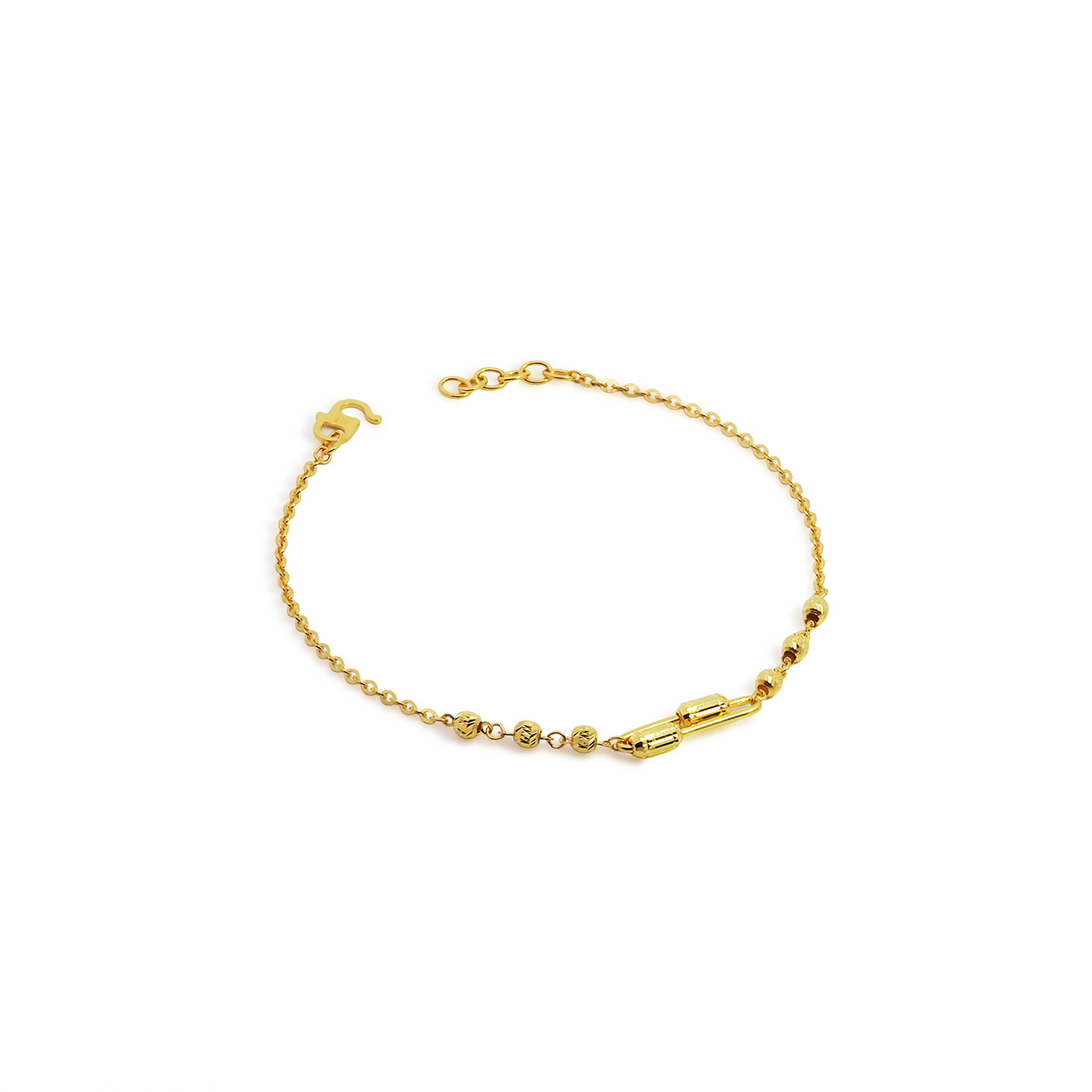 03309B 1C (FH) R.T Plain Ball/Heart 万字光珠间光杏仁手链-鱼勾