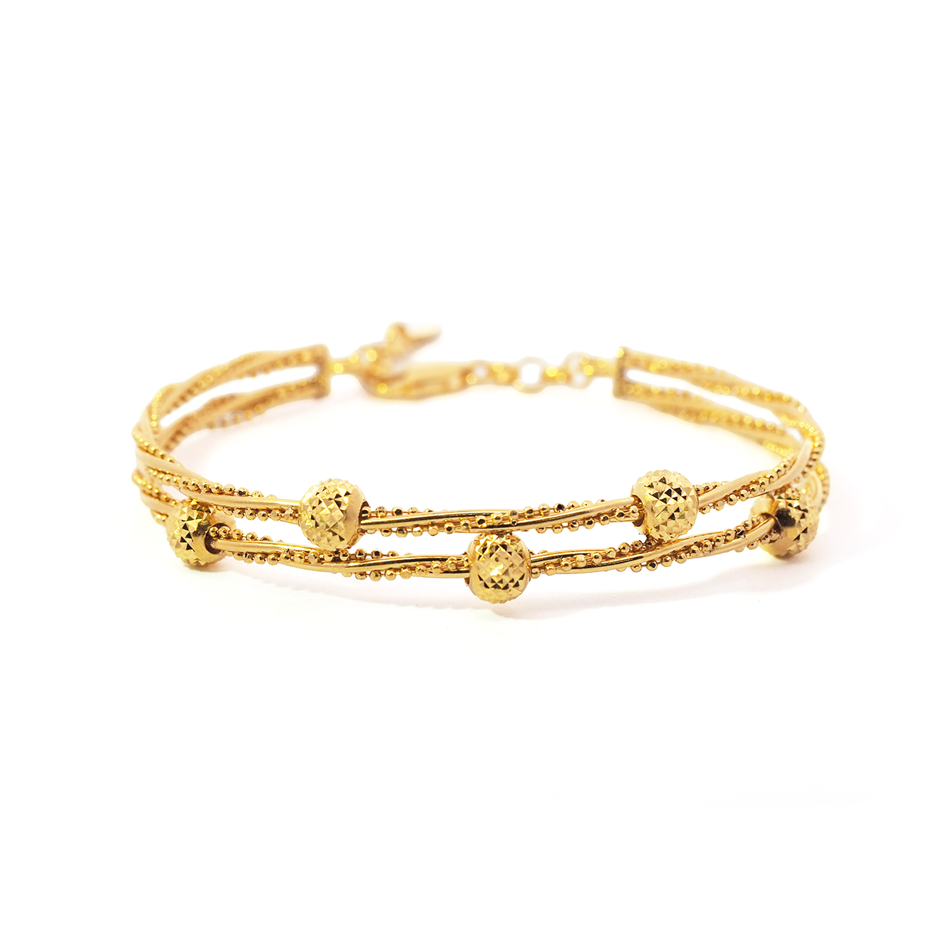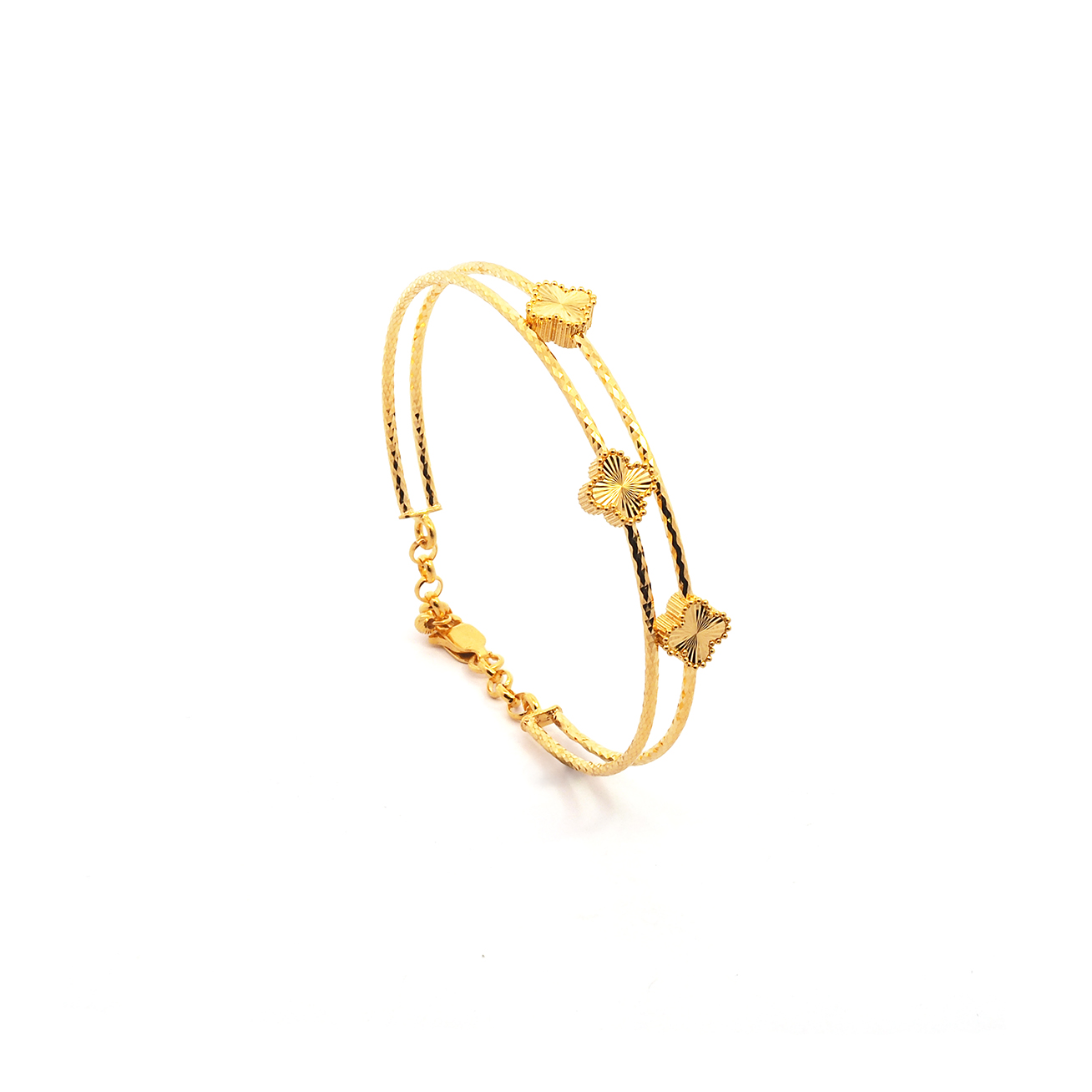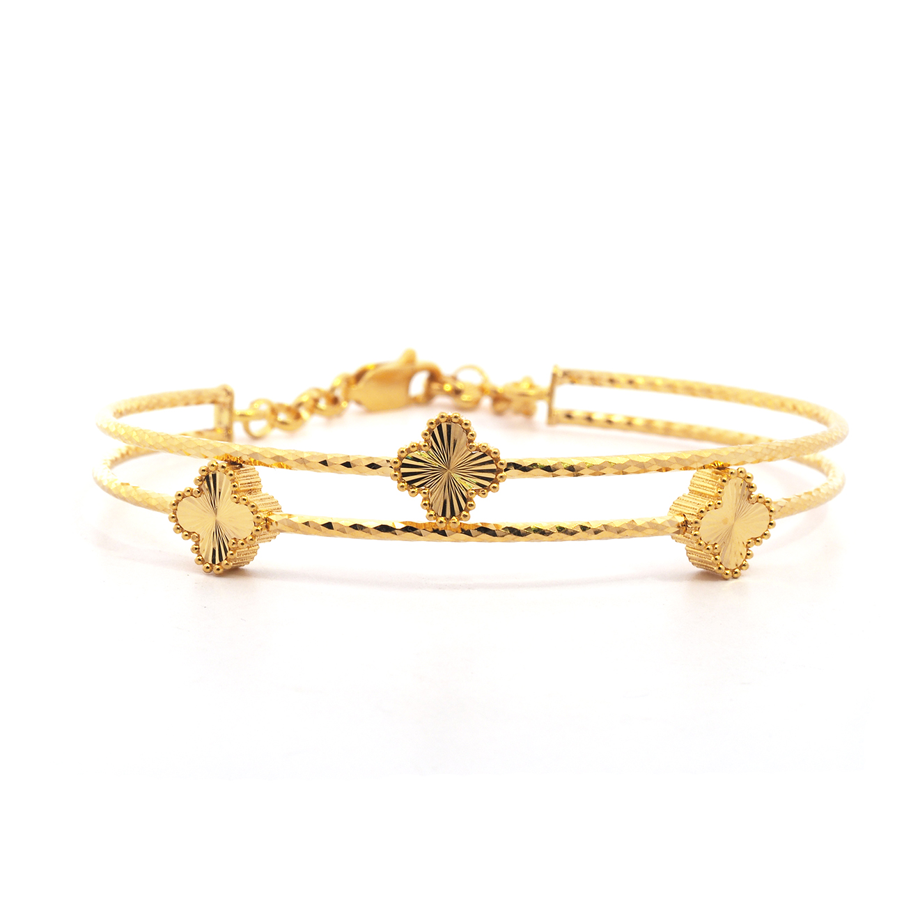03839G 1C (2ROW) (SH) G3839 G.T.2r 3pcs 4L Small SH 2行3粒四叶草(小)手镯-弹弓