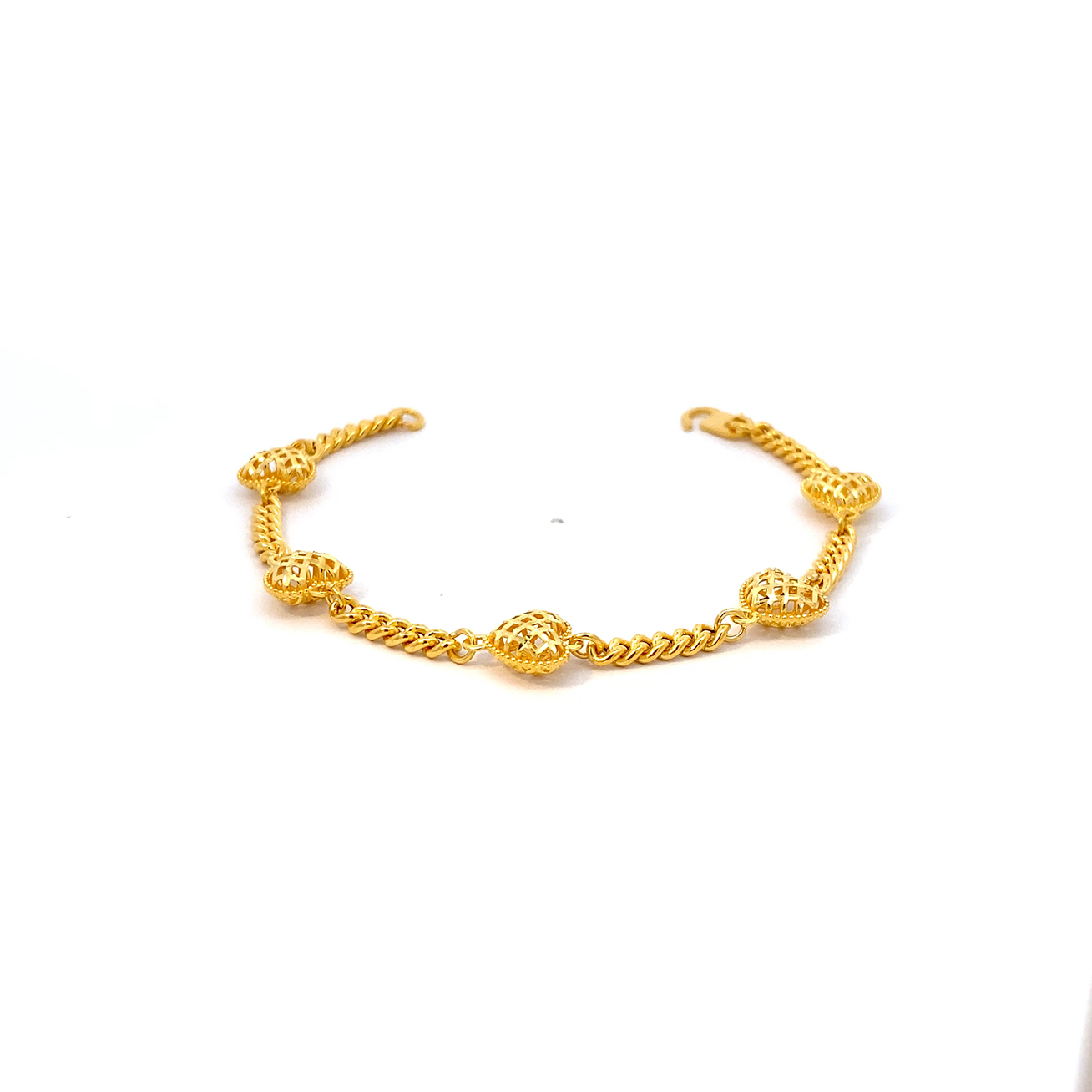 03309B 1C (FH) R.T Plain Ball/Heart 万字光珠间光杏仁手链-鱼勾
