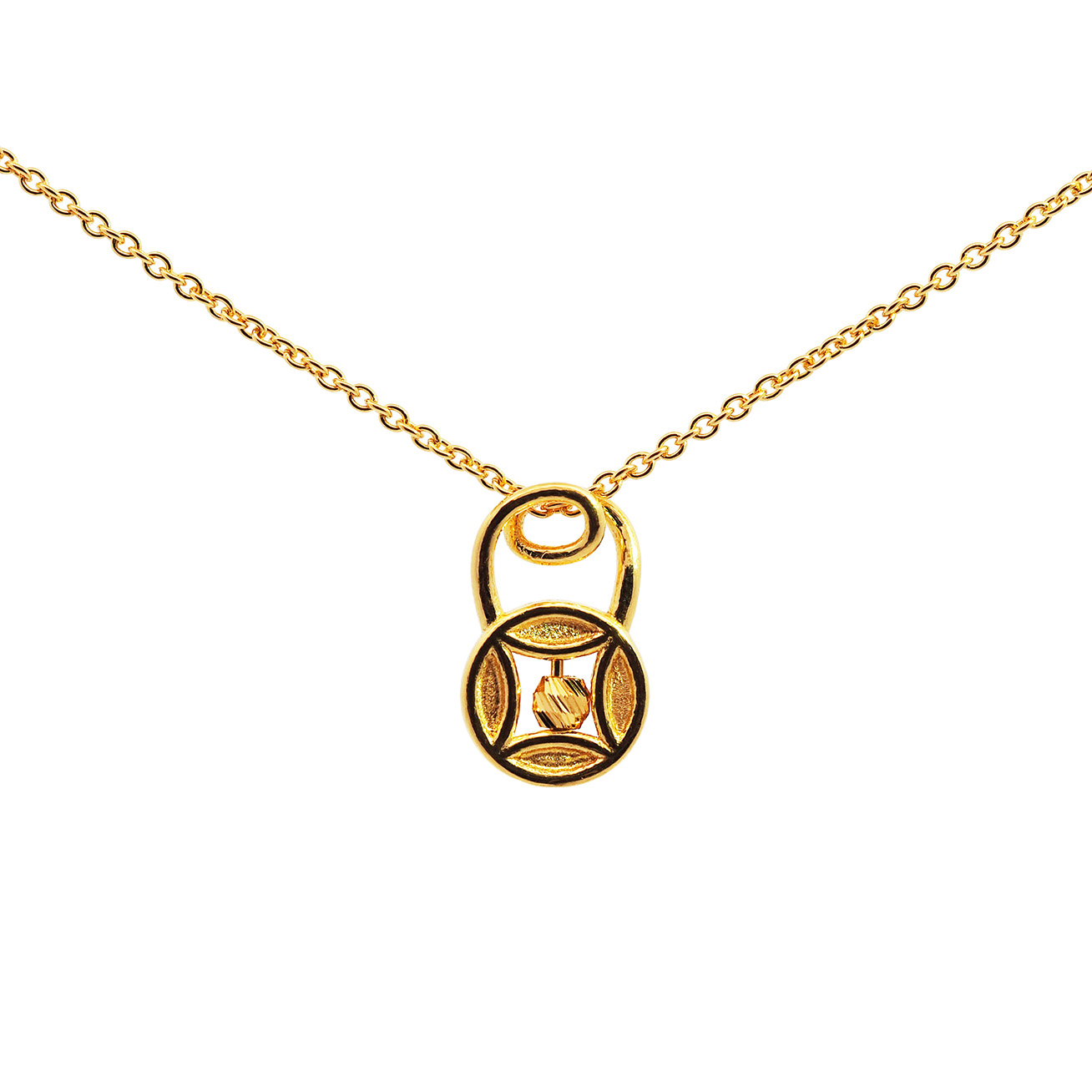 04209N 1C 1.20CI (FH) R.L.MesinSiamRnd.Coin 万字吊四叶圆牌子颈链